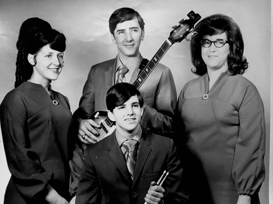 L.-R.: Kathy Buchanan, Marty Gabler, David Moore, Alice Gabler Ogilvie. The Crystalaires c1971