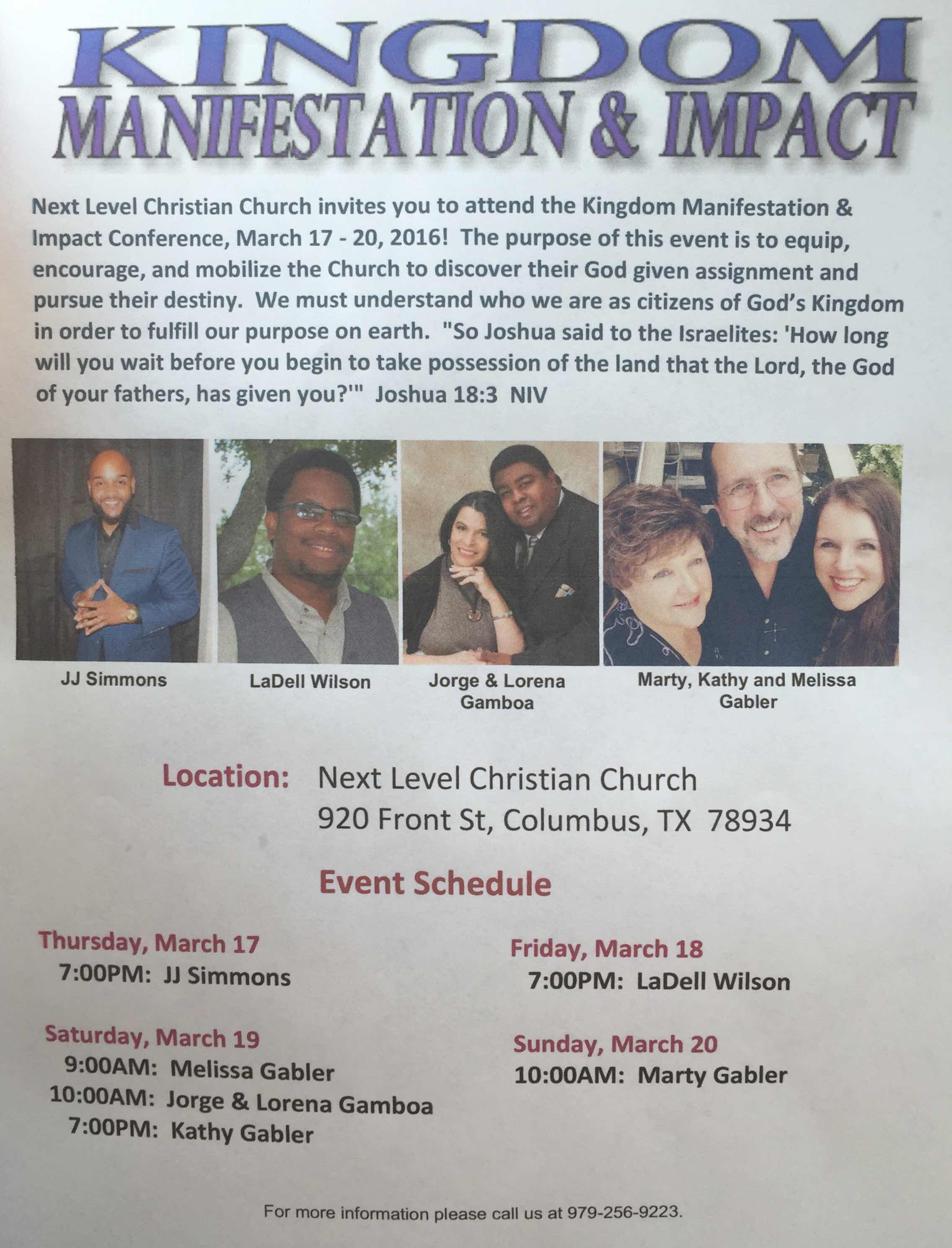Kingdom Conference in Columbus,TX *** March 17-20, 2016